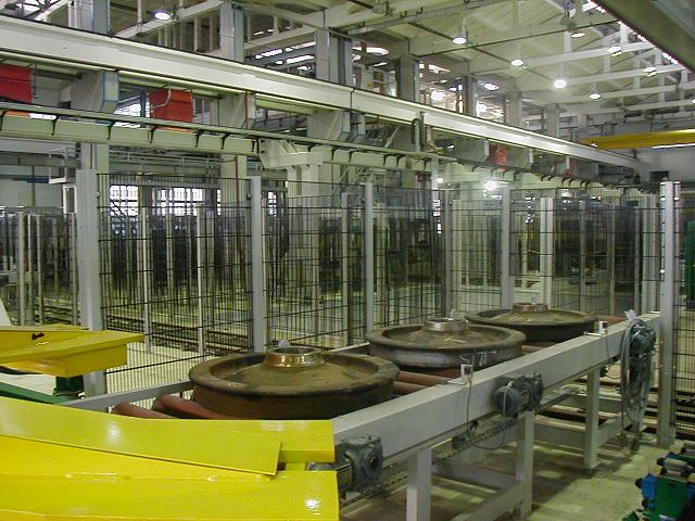 Всем процессом ремонта колесных пар на новой линии управляет автоматика. Есть и свои особенности: так, осетокарный станок производства SMTC может обтачивать подступичную часть оси с минимальным съемом металла –0,4 мм. Это продлевает срок службы оси на 8–10 лет. Монтажный комплекс обеспечивает не только высокоточное прессовое соединение в колесной паре, при необходимости на нем можно запрессовать колесную пару других геометрических размеров. Впервые в России применили межстаночное оборудование фирмы Gudel при создании поточной линии для ремонта колесных пар. Его принципиальное отличие –использование только одного вида энергии – электрической, что значительно снижает эксплуатационные расходы.